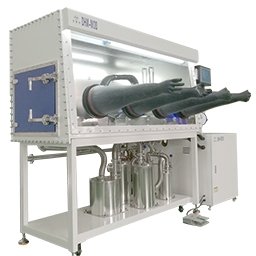 惰性气体保护的手套箱是一种提供无水无氧的惰性气氛保护的环境的设备。在箱体密闭空间填充惰性气体(如氮气、氩气、氦气等惰性保护气),通过除水氧净化器对箱体内惰性气体循环净化,不断吸附水、氧分子,形成惰性气氛保护的无水无氧环境。一般应用于需要对环境的水、氧含量进行严格控制的科研、生产等场所,用于活泼物料储存、分装、搅拌、冶炼、化学反应等用途。